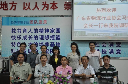 2011年5月9日,廣東省物流行業(yè)協(xié)會秘書長馬仁洪、常務(wù)副秘書長梁玉霞、教育培訓(xùn)工作委員會主任胡梅、主任助理鄒豐及協(xié)會常務(wù)理事單位廣州德鐿數(shù)碼技術(shù)有限公司總經(jīng)理殷王龍等一行前往國家骨干高等職業(yè)院校--順德職業(yè)技術(shù)學(xué)院開展調(diào)研工作。順德職業(yè)技術(shù)學(xué)院經(jīng)濟管理學(xué)院院長齊振彪、副院長高鈞、主任付平德及順德商會會長梅文昌、北?港總經(jīng)理田方人等人熱情接待了協(xié)會調(diào)研組。