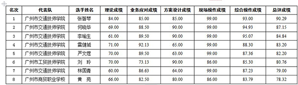 2012年廣東省物流師職業技能大賽圓滿成功,現將職工組前八名成績公布如下,望選手們繼續刻苦鉆研,再創佳績!