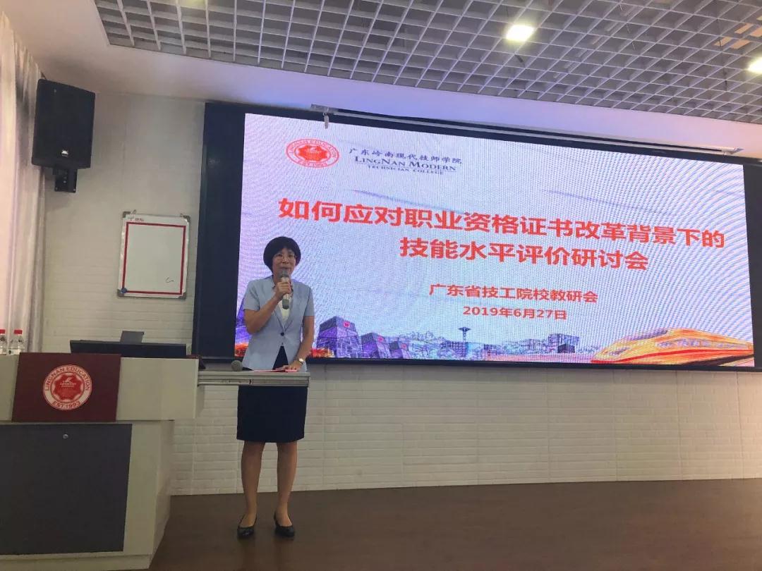 6月27日下午技工院校如何應對職業資格證書改革背景下的技能水平評價研討會于會員單位—廣東嶺南現代技師學院召開。省職業技術教研室、行業協會代表、企業代表、技工院校教學管理、實訓管理、技能鑒定所、專業系部等相關領導及教師近90余人參加,廣東省物流行業協會副秘書長胡梅、教育委員會主任單福情、教育委員會綜合部主任林曉生作為行業協會專家代表出席會議。會議由廣東嶺南現代技師學院鄭楚云副院長主持。