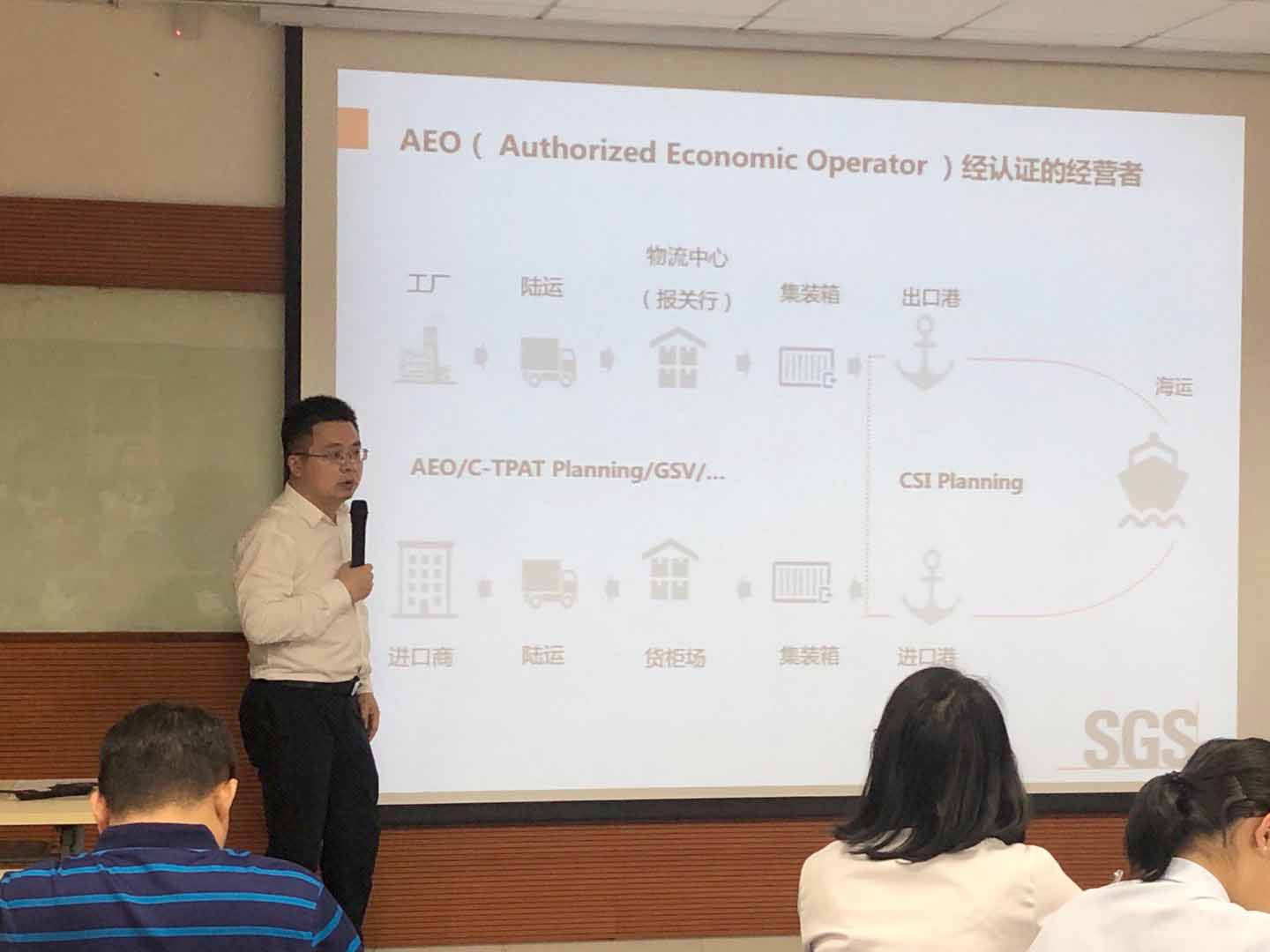 會議由GD/TC4馬仁洪秘書長致辭,SGS管理學院鄧彬彬高級講師做了《吃透AEO認證新標準,提升企業競爭力》的主題講座。會議從準確理解AEO認證新標準、內部控制核心要點與要求、貿易安全核心要點與思路、一次性無整改通過AEO認證6大建議等方面為大家做了深度培訓。