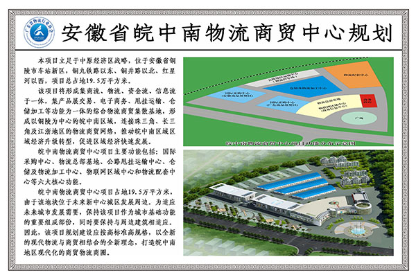 該項目將形成集商流、物流、資金流、信息流于一體,集產品展交易、電子商務、甩掛運輸、倉儲加工等功能為一體的綜合物流商貿集散基地,形成以銅陵為中心的皖中南區域,連接珠三角、長三角及江浙地區的物流商貿網絡,推動皖中南區域區域經濟升級轉型,促進區域經濟快速發展。