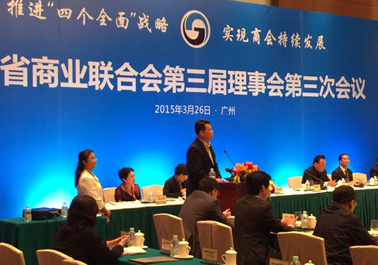 2015年3月26日,廣東省商業(yè)聯(lián)合會(huì)(以下簡(jiǎn)稱“商會(huì)”)第三屆理事會(huì)第三次會(huì)議在東方賓館召開。