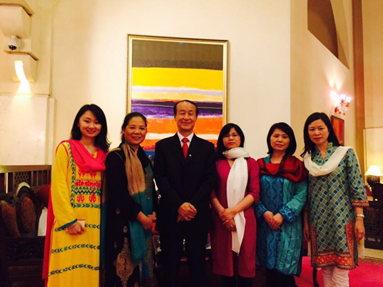 3月29日晚,協(xié)會代表考察團一行應邀參加巴基斯坦國家總統(tǒng)Mamnoon Hussain 的晚宴,受到最高規(guī)格的國事禮遇,握手及官邸晚宴。總統(tǒng)特別安排馬仁洪秘書長及梁玉霞常務副秘書長共桌進餐。餐后現(xiàn)場,馬秘書長送上“一帶一路”經(jīng)濟環(huán)地圖向總統(tǒng)介紹并送上土豆禮物,總統(tǒng)再次握手致謝并在晚宴致辭中深切表達對中國代表團來訪參加2015巴中商貿(mào)論壇的謝意,促進兩國的商貿(mào)經(jīng)濟流通,加強合作,巴中友誼,萬古長青!