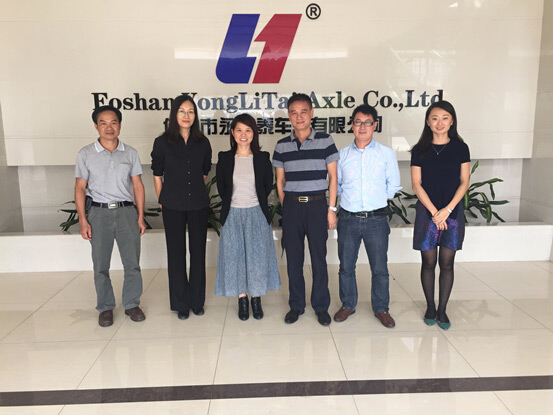 2015年10月13日,廣東省物流行業協會一行到訪理事單位——佛山市永力泰車軸有限公司參觀,董事長陳晨達、總經理沈華林、副總經理邵娟娟接待并陪同參觀了工廠車間。