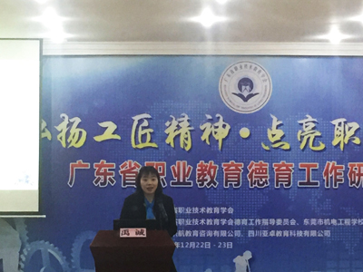 12月23日,“弘揚工匠精神·點亮職教之魂”廣東省職業教育德育工作研討會于東莞市機電工程學校圓滿舉行,主辦方廣東省職業技術教育學會會長李小魯、副會長彭鐵英、副會長兼秘書長余堅,東莞市教育局副局長陳啟明,惠州城市職業技術學院校長鄧慶寧,佛山科學技術學院黨委書記曾崢,廣東民政學校校長鄧小興,廣東技術師范學院馬克思主義學院院長汪永智,廣東省物流行業協會副秘書長胡梅等來自政府、行業協會、院校領導代表與會交流。