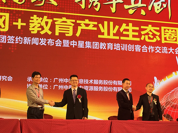 中星創始人王碧武董事長致歡迎詞,感謝由首控集團對中星5億元的A輪融資,將重點構建標準的知識服務體系,已完成互聯網+教育生態圈的布局,解決資源、品牌、項目等五位一體的解決方案。隨后,首控集團主席兼執行董事席春迎博士發言,中星與廣東省延安精神研究會及各合作機構、院校戰略合作簽約儀式進行,抽獎環節和文藝表演為大會助興。